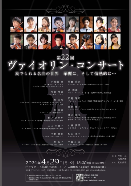 演奏会 【終了しました】2024年4月29日(月・祝)第22回 ヴァイオリン・コンサート