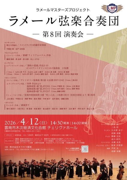 ラメール弦楽合奏団 〜第8回演奏会〜2026年4月12日(日)雲南市木次経済文化会館 チェリ... -