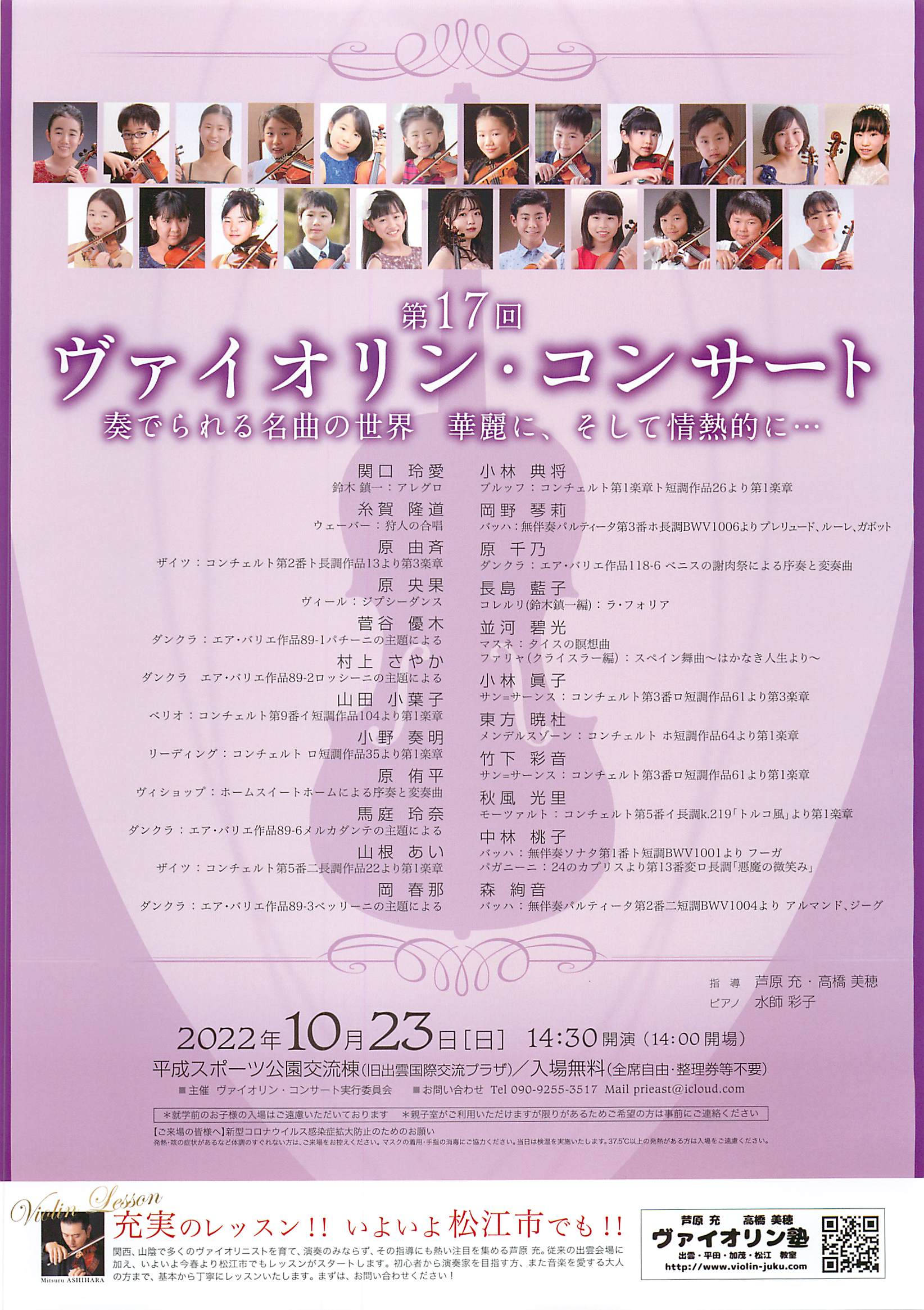 【終了しました】2022年10月23日(日)第17回ヴァイオリン・コンサート