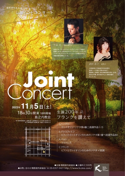 演奏会 【終了しました】2022年11月5日(土)芦原 充 武村直子 Joint Concert 生誕200年フランクを讃えて