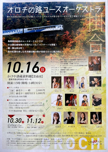 演奏会 【終了しました】2022年10月16日(日)オロチの路ユースオーケストラ 掛合
