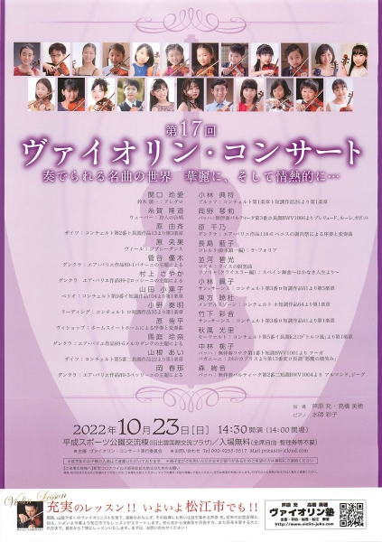 演奏会 【終了しました】2022年10月23日(日)第17回ヴァイオリン・コンサート