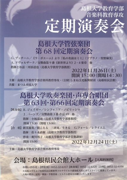 演奏会 【終了しました】11月26日(土)島根大学管弦楽団 第68回定期演奏会 開催のご案内