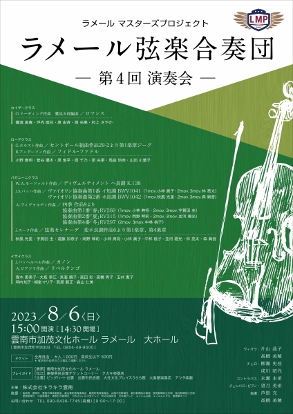 ラメール弦楽合奏団 【終了しました】2024年3月31日(日)ラメール弦楽合奏団 〜第4回 演奏会〜