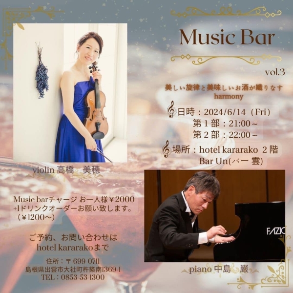 演奏会 【終了しました】2024年6月13日(金)Music Bar 〜美しい旋律と美味しいお酒が織りなすHarmony〜